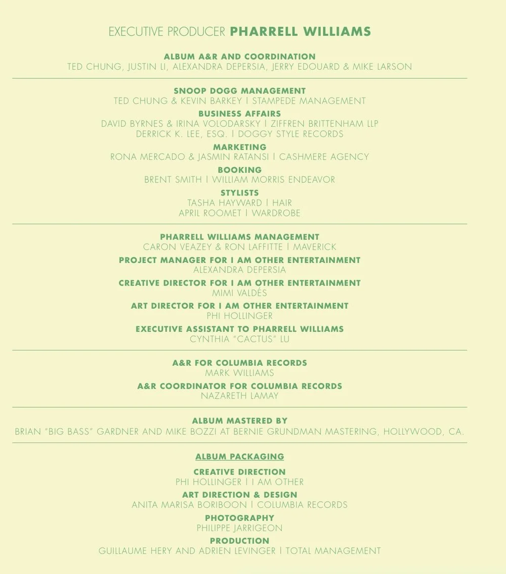 EXECUTIVE PRODUCER: PHARRELL WILLIAMS